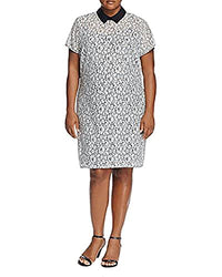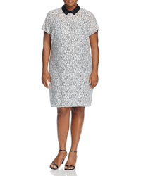 A contrasting point collar lends a cool-girl twist to this lovely-in-lace shift dress by MICHAEL Michael Kors Plus. Fits true to size, order your normal size Contrast point collar, short sleeves, lace Concealed back zip with hook-and-eye closure, lined Approx. 40" from back of neck to hem, based on a size 1X Model height: 5'9" Cotton/nylon/polyester; lining: polyester Dry clean Imported