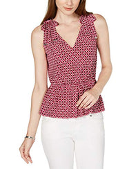 Michael Kors Petite Printed Tie-Shoulder Top (Deep Fuchsia/Garnet, P/XS)