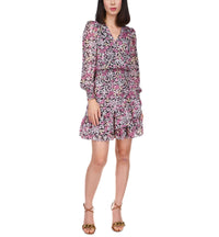 MICHAEL KORS Womens Smocked Ruffled Pullover Lined Floral Long Sleeve Surplice Neckline Short Party Faux Wrap Dress