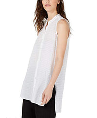 With an easy silhouette, this sleeveless blouse from Eileen Fisher is comfortable and chic. Hits at hip; approx. 29" long V-neck; front button closure Available in Regular & Petite sizes Petite sizes designed to fit and flatter 5'4" and under frame Organic cotton/spandex Machine washable or dry clean Imported Web ID: 8777412