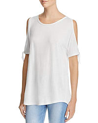 PAIGE puts a signature spin on your favorite easy weekend tee with open shoulders and slouchy tie sleeves. Fits true to size, order your normal size Scoop neck with raw-edge binding Open shoulders, tie sleeves, round hem Approx. 26.5" from high point shoulder to hem, based on a size small Viscose; contrast; polyester Dry clean Imported
