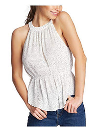 Micro pleats and mini dots bring a super playful vibe to this sleeveless top from 1.STATE, designed with a cinched waistline that leads to a flowy hem. Approx. model height is 5'10" and she is wearing a size small Semi-fitted; hits at hip Halter neckline; back button closure Pleated throughout; cinched at waistline Polyester Machine washable Imported Web ID: 10423540