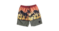 Silhouetted palm trees introduce super-relaxed vibes to these comfortable swim trunks with an adjustable drawstring waist from Quiksilver. Elastic waistband with drawstring Two pockets at sides; two welt pockets at back Mesh lining Approximate outseam: 19" Polyester Machine washable Imported Web ID: 6460885