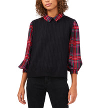 Riley & Rae makes your next wardrobe pick easy with this 2-for-1 sweater. Approx. model height is 5'9" and she is wearing a size small Approx. 21" long Point collar; buttoned keyhole closure at back Cotton/polyester/nylon/wool Machine washable Imported Web ID: 12906633