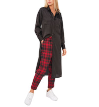 Sleek, silky satin makes the party scene in Riley & Rae's dramatic menswear-inspired duster, styled with a point collar and two chest pockets. Approx. model height is 5'9" and she is wearing a size small Relaxed fit; approx. 46" long V-neck with point collar; front button closures Two chest pockets; side vents at hem Long sleeves with drop shoulders and button cuffs Polyester Machine washable Imported Web ID: 13235633