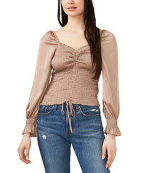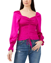 Perfect for date night: add some romance to your closet with this smocked long sleeve top from Riley & Rae. Sweetheart neckline Smocked front and back; self-tie at front Long sleeves with elasticated cuffs Cotton Machine washable Imported Web ID: 13334123