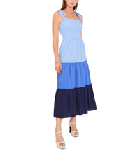 Chic colorblocking and charming tied straps bring plenty of whimsy to Riley & Rae's midi dress, making it a perfect pick for your next event. Approx. 47" long from center back neck to hem Square neckline; midi silhouette Straps tie at shoulders; smocked at center back; tiered skirt Lined Shell & lining: Cotton Machine washable Imported