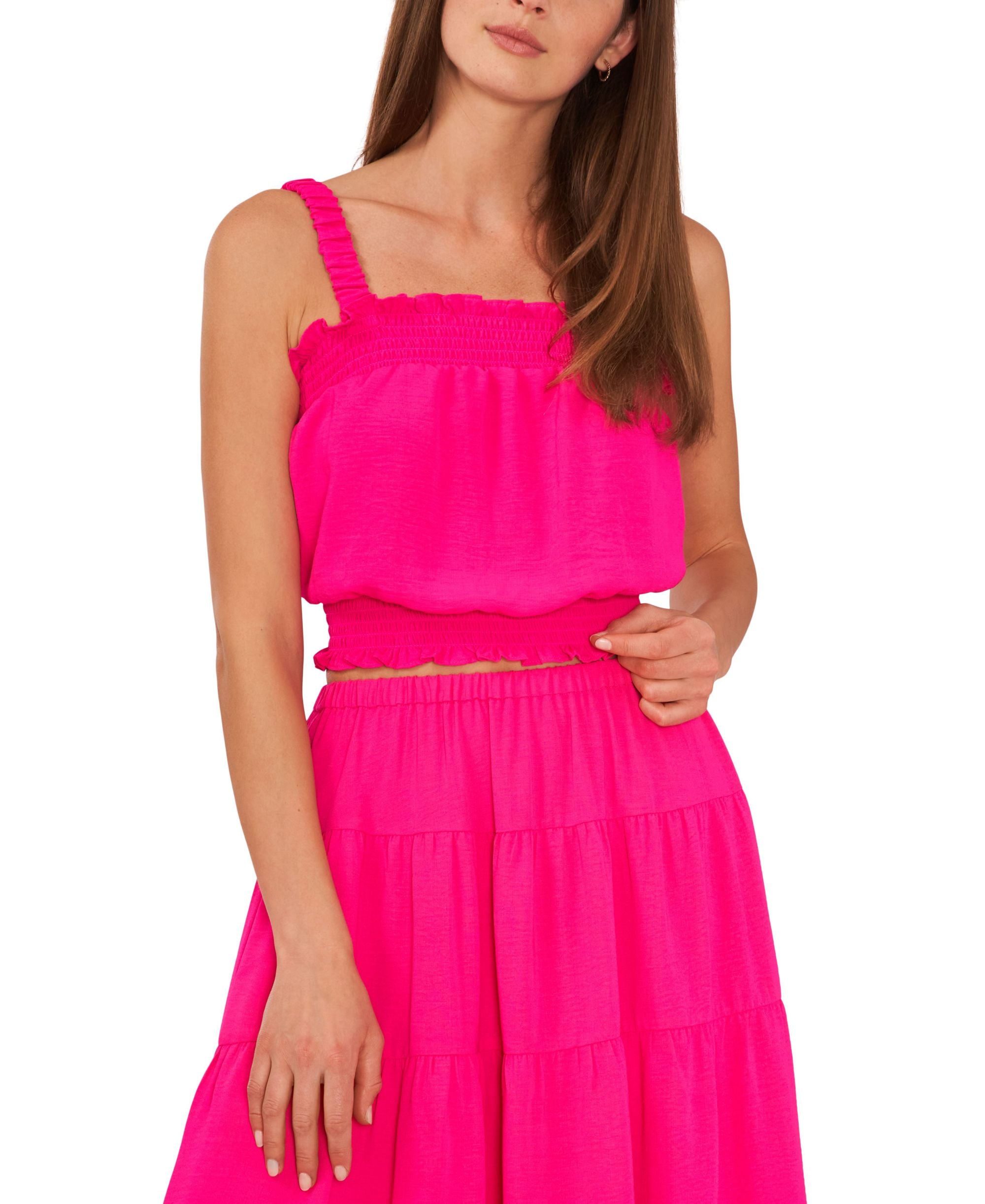 Riley Rae Womens Cropped Smocked Tank Top