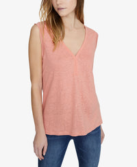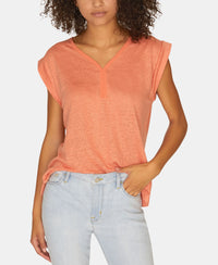 Cap-sleeves and a relaxed silhouette set the effortless chic tone for this Sanctuary T-shirt in 100% linen. Hits at hip, approx. 25" long V-neck Cap sleeves Linen/polyester Machine washable Imported Web ID: 8309926