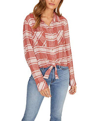 The tie at the front transforms the classic button-up silhouette of this plaid shirt from Sanctuary, creating a modern and fresh look. Hits at hip; approx. 21-1/2" long V-neckline; button-front closures Tie at front hem; pockets at chest Linen/rayon Machine washable Imported Web ID: 8431657