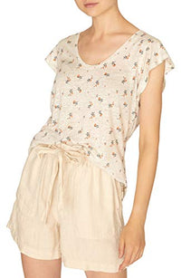 Sanctuary takes this linen scoop-neck top to an elegant place with gorgeous flutter sleeves and a delicate floral print. Hits at hip; approx. 24-3/4" long Scoop-neck Flutter cap sleeves Linen Hand wash Imported Web ID: 8309930