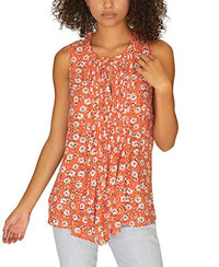 Sanctuary gives you a floaty and flowy feel with this sleeveless top, finished with a sweet floral print and polished pintuck pleats at the center front and back. Hits at hips Ruffled split neckline with self ties Pintuck details at center front and back Rayon Machine washable Imported Web ID: 8310100