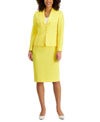 A shawl collar adds a fresh look to this skirt suit from Le Suit. Featured in a flattering pencil silhouette, this will be the first one you reach for any day of the week. Petite sizes designed to fit and flatter 5'4" frame and under Available in regular and petite sizes Jacket:shawl collar, three-button closure, shoulder pads, seamed detail at front, lined Skirt: pencil silhouette, zipper closure at back, lined Polyester; lining: polyester Dry clean Imported Web ID: 13159095