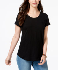 Style & Co's solid crewneck top, featuring a patch pocket at left chest, is an easy essential to add to your wardrobe. Approx. model height is 5'10" and she is wearing a size small Relaxed fit; approx. 27-1/4" long Scoop neckline Patch pocket at left chest Cuffed short sleeves All cotton Machine washable Imported