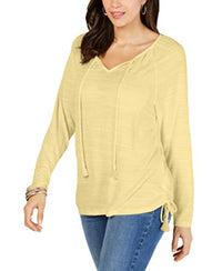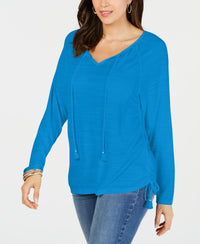 A crinkled texture accents the carefree peasant-inspired look of this tie-neck top from Style & Co.