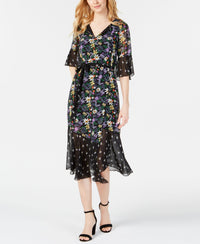 Mixed moody blooms add a hint of intrigue to Taylor's flowy and ethereal midi dress. Approx. model height is 5'10" and she is wearing a size 4 Approx. 46-1/2" long from center back to hem. Length is based on size 4 and varies 1/2" between sizes Jewel neckline with keyhole and tie details; A-line silhouette Hidden back zipper with hook-and-eye closure Mixed floral print throughout; flounce hem; tie at waist Shell and lining: polyester Hand wash Imported