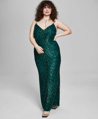Trendy Plus Size Sequined V-Neck Sleeveless Gown