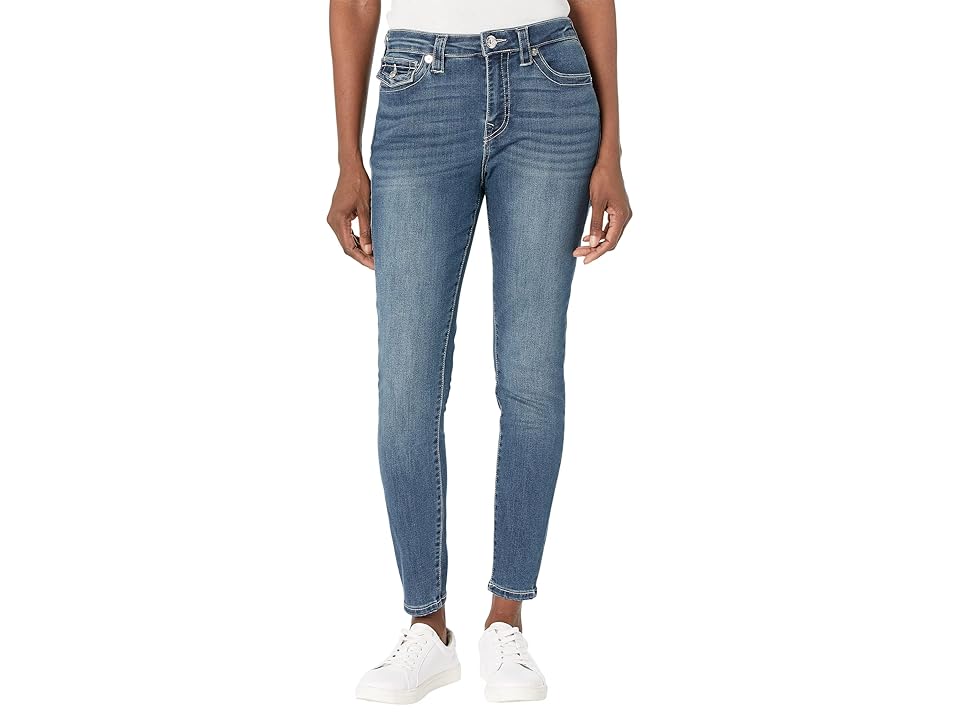 Make your style appealing to the crowd by wearing True Religion Sequin Halle Mid-Rise Super Skinny in Beach Scape. Slim fit. Pull-on style. Waistband with loops. Front zip-fly and button closure. Classic five pockets. Tapered ankle-length legs. Ruched at the thighs. Washed effect. 71% cotton, 24% polyester, 3% other fibers, 2% spandex. Machine wash, tumble dry. Imported. Measurements: Waist Measurement: 34 in Outseam: 39 in Inseam: 28 in Front Rise: 11 in Back Rise: 14 in Leg Opening: 10 in Product measurements were taken using size 31. Please note that measurements may vary by size.