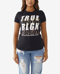 True Religion Womens Short Sleeve Foil Logo Slim Crew T-Shirt
