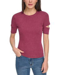 Women's Cutout Short-Sleeve Rib-Knit Top