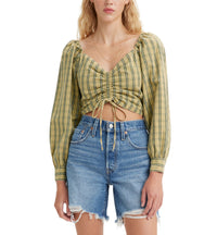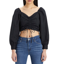 Fresh looks from Levi's, this women's top is fashioned from all cotton for a breezy finish. V-neck Adjustable cinched front ties; smocked at back All cotton Machine washable Imported