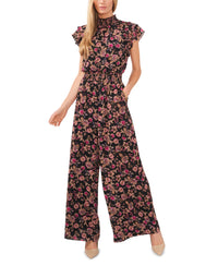 Women's Flutter Sleeve Mock Neck Smocked Waist Jumpsuit