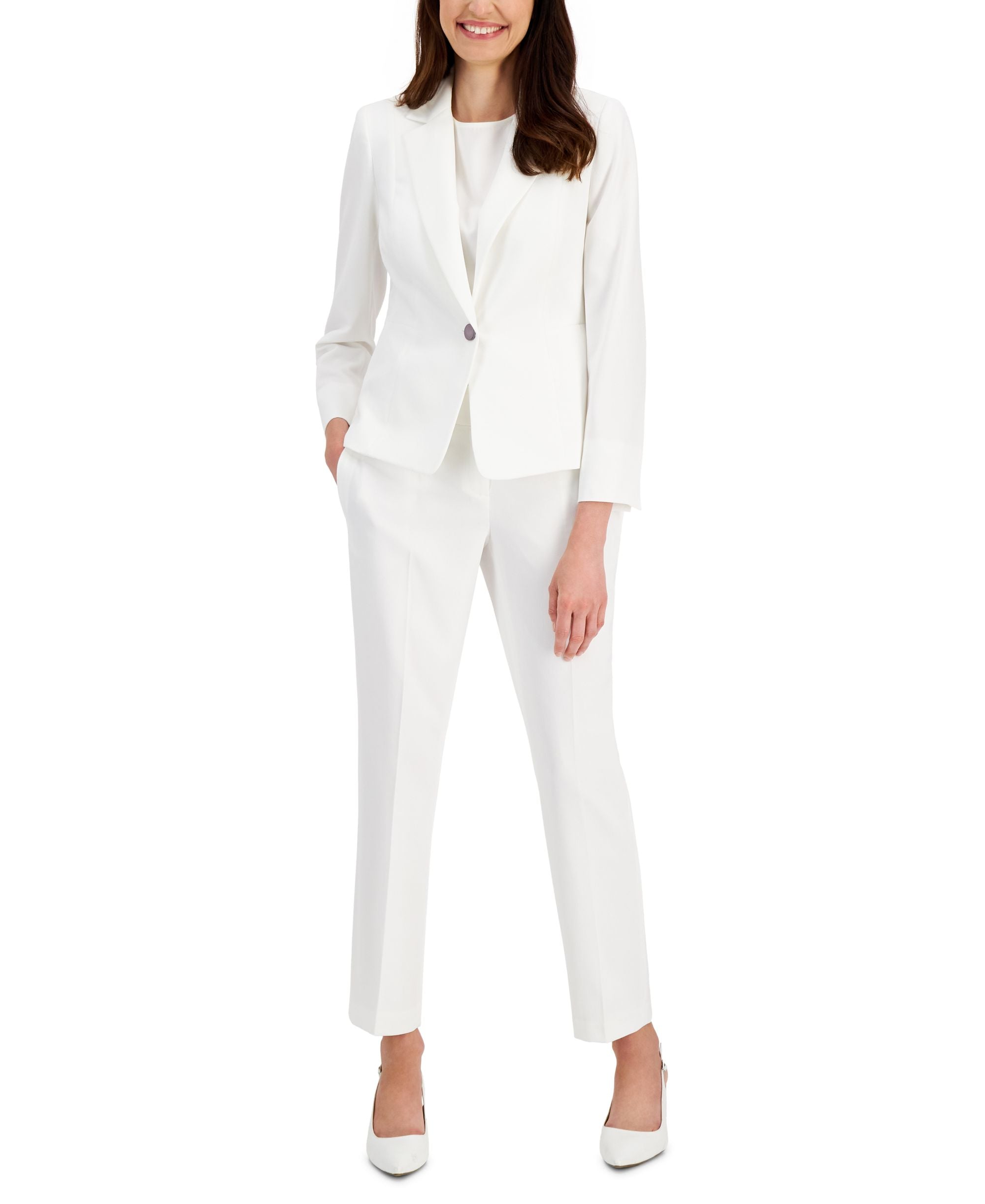 Be boardroom-ready in an instant with this classically timeless pantsuit by Le Suit, featuring a one-button jacket and a slim-fit pant, guaranteed to flatter.