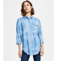 Women's Oversized Bandana-Print Button-Down Chambray Shirt