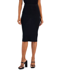 Sleek, stylish, polished and super comfy to boot- this sweater skirt by I.N.C. International Concepts is defined by its ribbed texture and classic pencil silhouette. Make this a staple of your collection! Approx. length: 27-1/2"; Pencil silhouette Pull-on style Variated rib-knit throughout Unlined Polyester, rayon, nylon Machine wash Imported