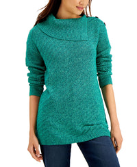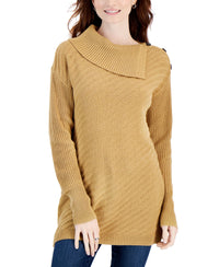 Elevate your cool-weather closet with this casual-chic sweater, soon to be a loved favorite from Style & Co. Relaxed fit; approx. 28" (R) long Asymmetrical neckline Button detail at left shoulder Cotton/acrylic Machine washable Imported